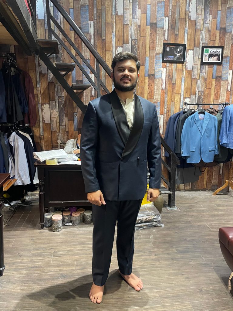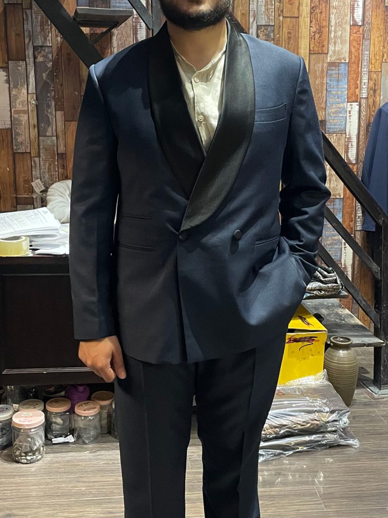 A navy tuxedo is a more modern, yet still dressy alternative to the traditional black