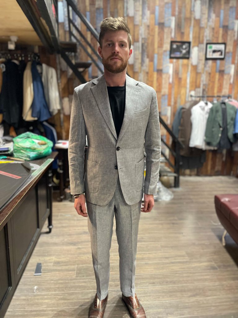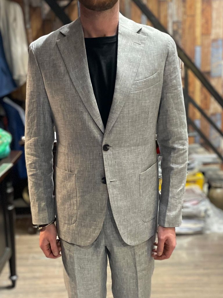 An intriguing mix, refined in its neutral grey tone, yet a touch rebellious with the breezy charm of linen