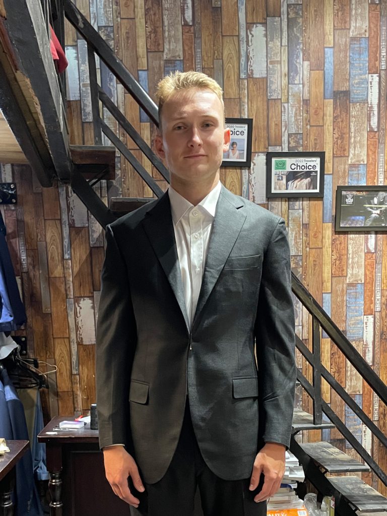 This guy went for two suits with contrasting vibes: a classic, versatile navy, and a light, laid-back beige