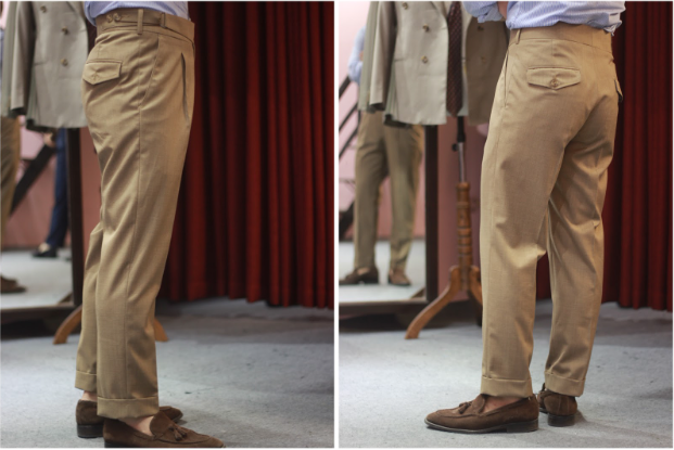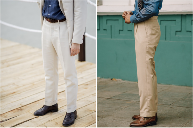 An easy way to tell if your trousers are in the right length is observing the “break”. It’s the little crease that appears when your shoe’s top stops your trouser cuff from reaching its full length. It’s up to each person how much break is appropriate for their pair of trousers.