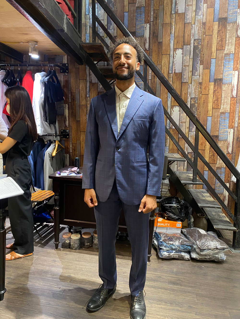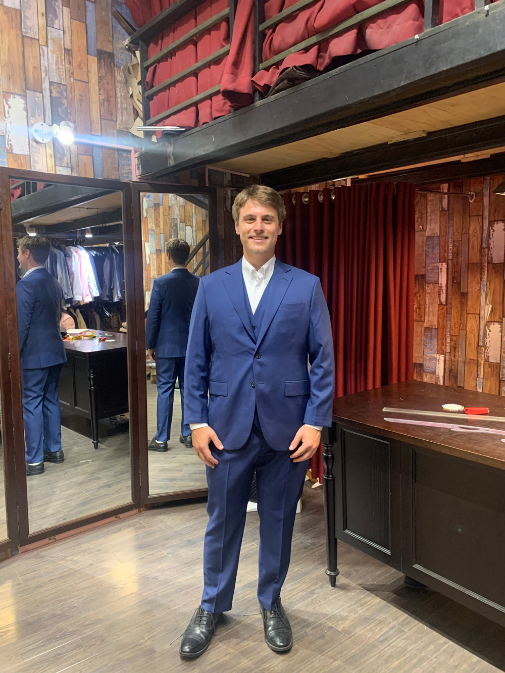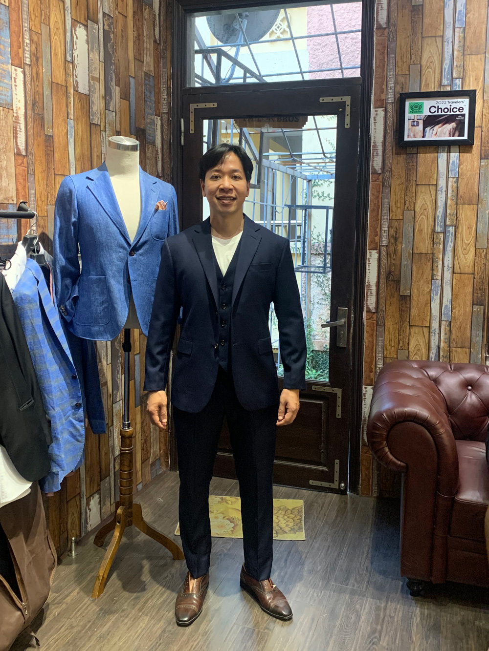 If you have enough time, don’t mind getting two suits in Vietnam. One navy, one more YOU.