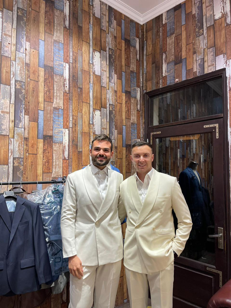 Father and son, regular customers of Tailor Bros in tailor-made outfits