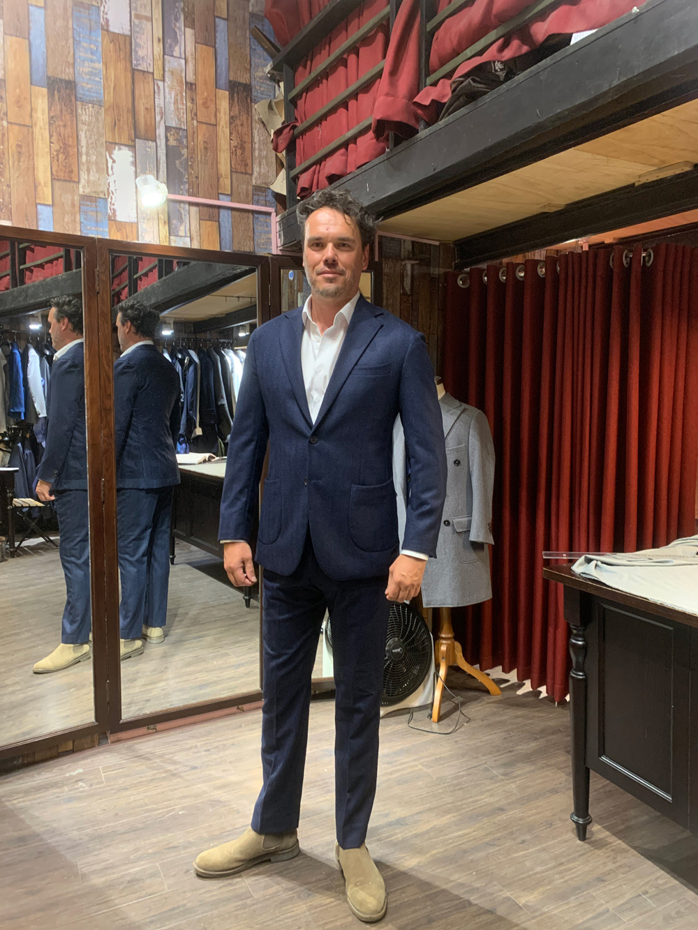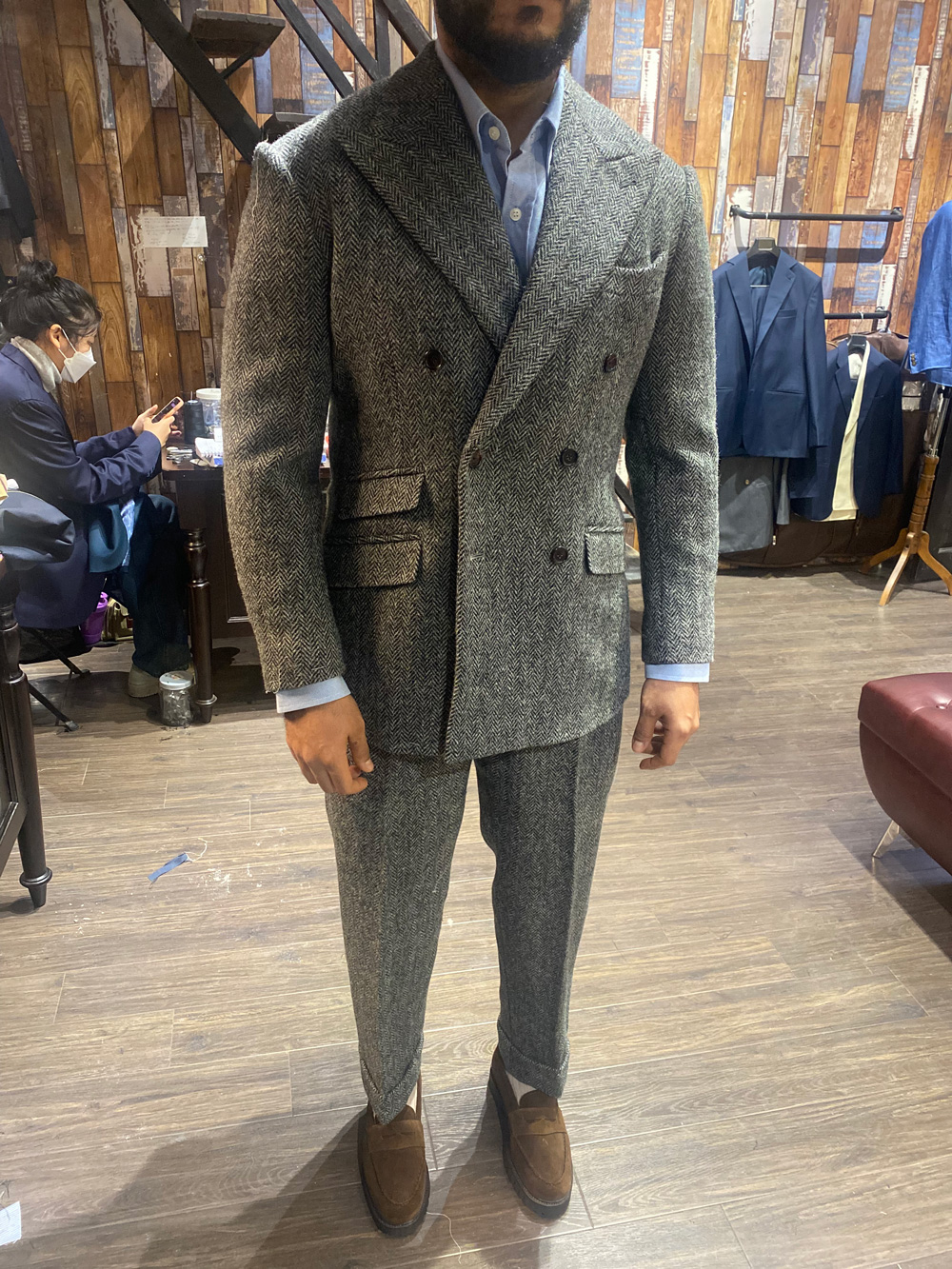 Our regular customer in a typical British flannel suit