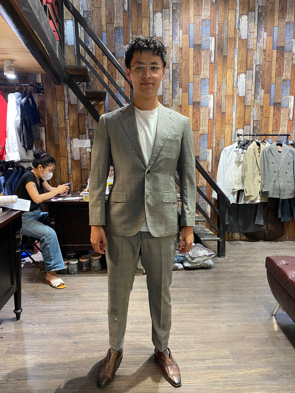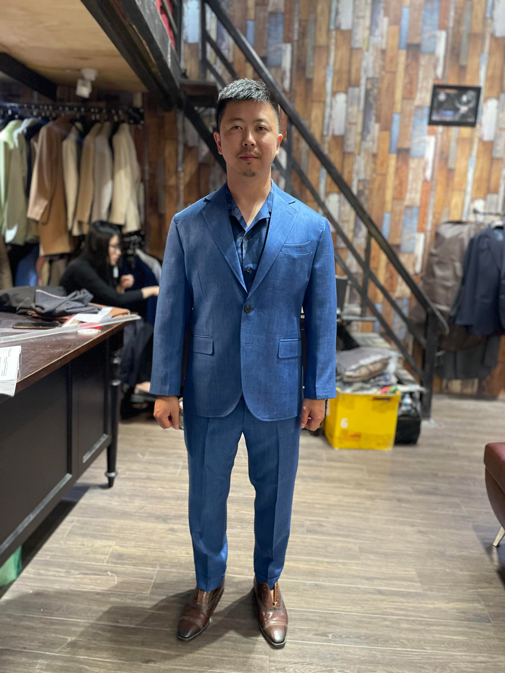 Not only formal shirts, untucked short-sleeved shirts are also no problem for us. Besides, this gentleman ordered two more suits to ensure a versatile wardrobe