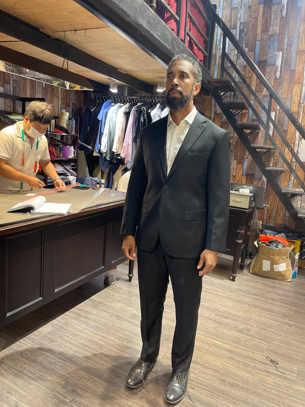 This gentleman chose to tailor a formal suit and a more casual outfit