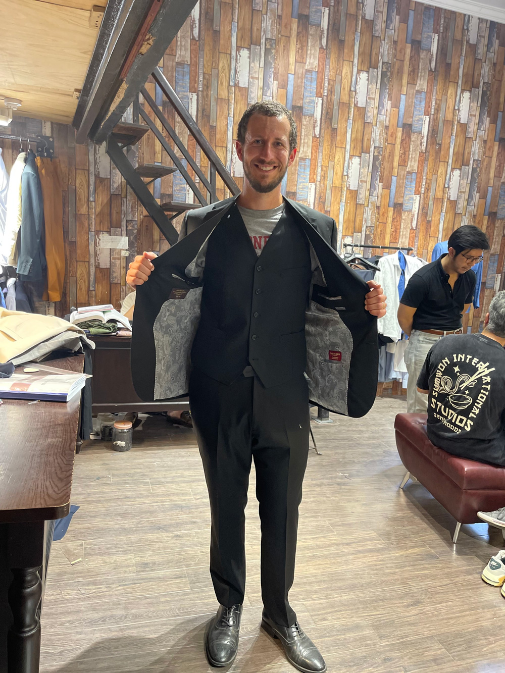 This guy really liked his suit, but also liked our sample jacket
