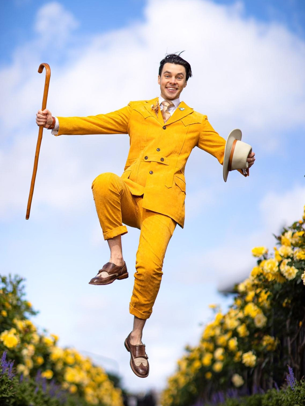 This guy is playful in his two outfits, one formal and one casual